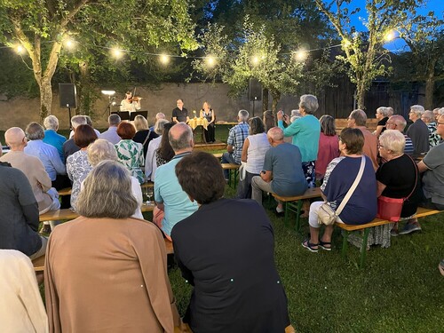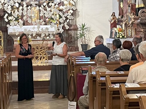 Die Fortsetzung am Folgeabend im Garten der Familie Griessler mit einer die Lachmuskeln herausfordernden musikalischen Kabarettlesung. Und am 3. Abend die Festmesse mit Ehrengästen in der Pfarrkirche samt Ehrung der KBW Leiterin Christine Wippel und der BHW-Leiterin Annemarie Griessler. Anschließend lud der Dämmerschoppen (aufgrund Wetterbedingungen im Pfarrhof) bei Swingmusik vom Feinsten und kulinarischer Betreuung durch den PGR zum Bleiben ein.