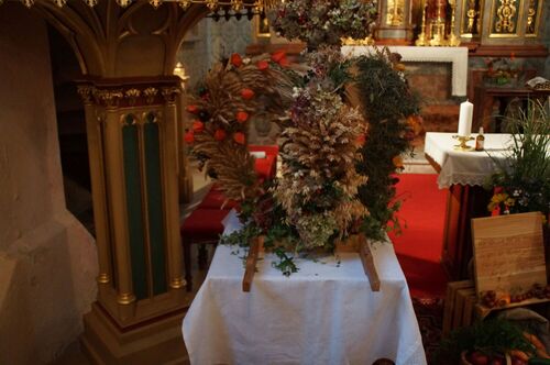 Fotos von einer wunderschön geschückten Kirche. Eindrücke von einem schönen Gottesdienst.