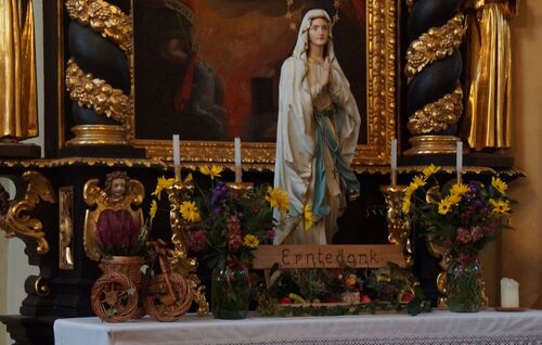Fotos von einer wunderschön geschückten Kirche. Eindrücke von einem schönen Gottesdienst.